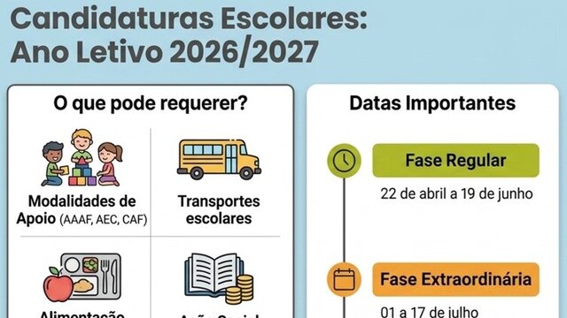 Candidaturas aos apoios escolares para o ano letivo de 2026/ 2027