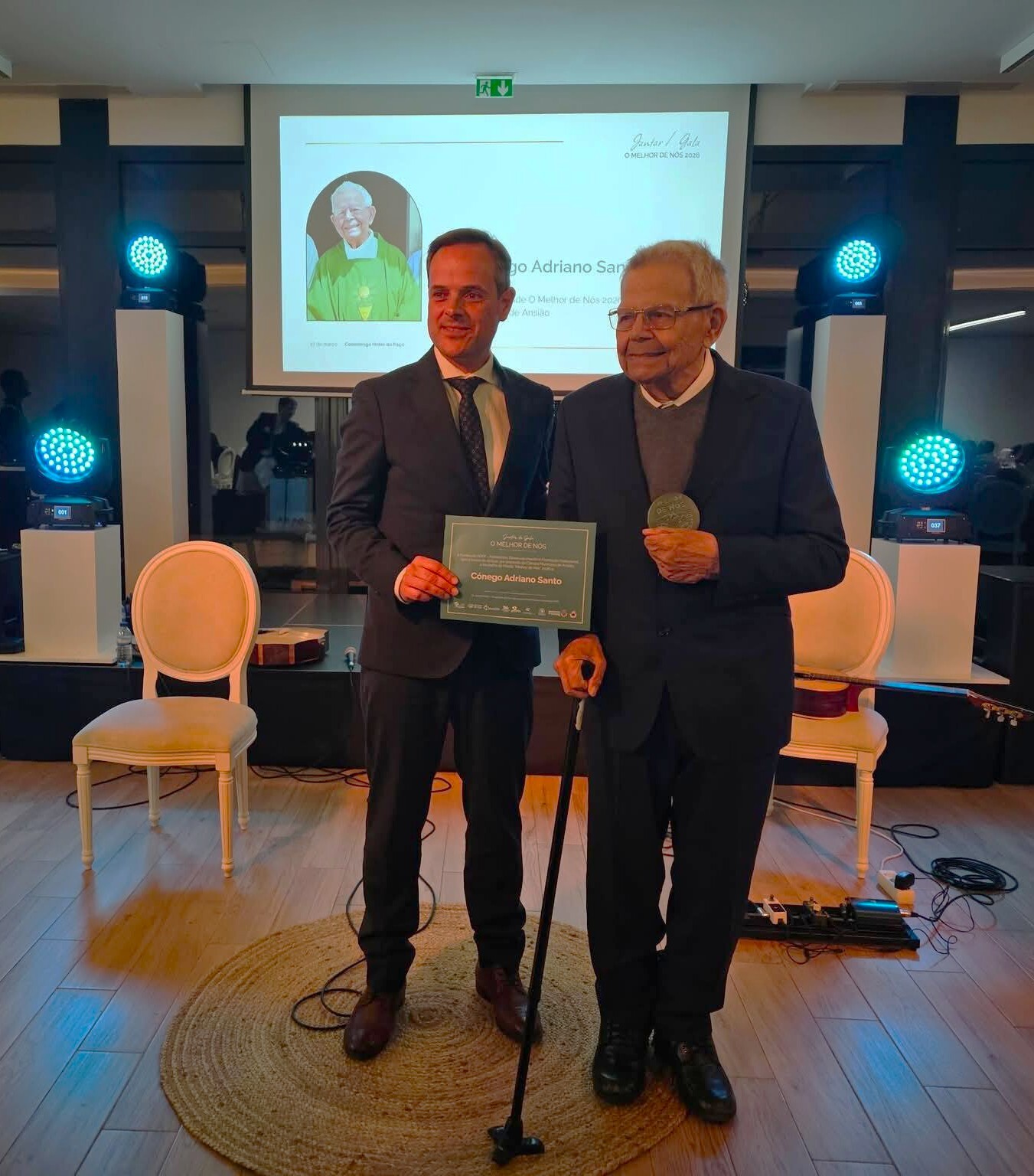 Relativamente ao Concelho de Ansião, a personalidade distinguida foi o Cónego Adriano Santo - com 100 anos de idade e 75 de sacerdócio -, sobre o qual o presidente da autarquia ansianense, Jorge Cancelinha, destacou a “obra extraordinária” que tem desenvolvido, nomeadamente na freguesia de Chão de Couce, “juntamente com a sua família”, em torno da Fundação Dona Fernanda Marques. E, após ter ouvido as palavras que Adriano Santo teve ocasião de dirigir à plateia, o edil sublinhou serem “uma prova de vitalidade e também de discernimento que nos inspira”.