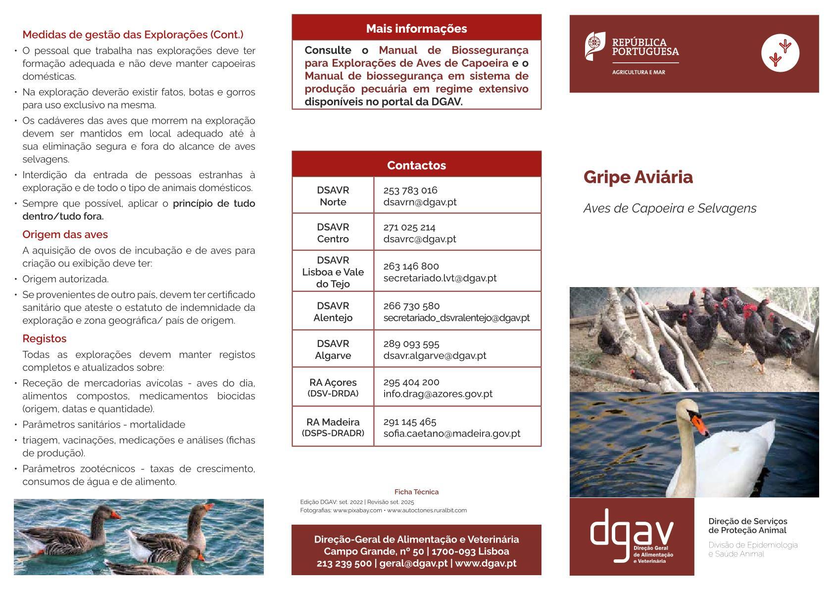 Consulte a divulgação informativa da Direção-Geral da Alimentação e Veterinária relativa à gripe aviária.