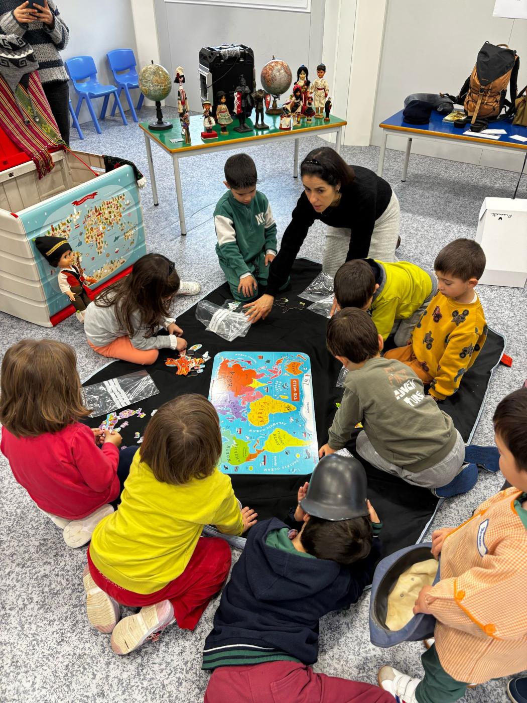 Esta atividade integra o projeto pedagógico aprovado em Conselho Pedagógico do Agrupamento de Escolas de Ansião, entidade competente nesta matéria. Através de uma abordagem lúdico-cultural, as crianças exploraram diferentes culturas com recurso a objetos simbólicos – chapéus, bonecas, barcos, livros – e embarcaram em viagens imaginárias, destacando-se os vikings e os guardas reais britânicos como favoritos.
