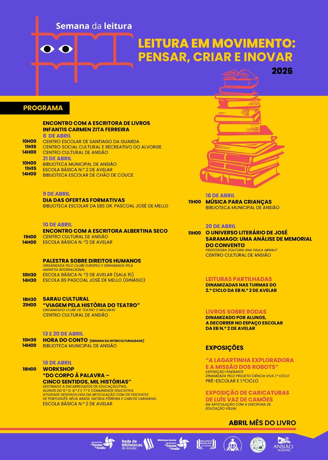 Começou hoje em Ansião, e prolonga-se até ao próximo dia 21, mais uma edição da Semana da Leitura, que em 2026 tem como tema “Leitura em Movimento: Pensar, Criar e Inovar”, conforme proposto pelo Plano Nacional de Leitura.