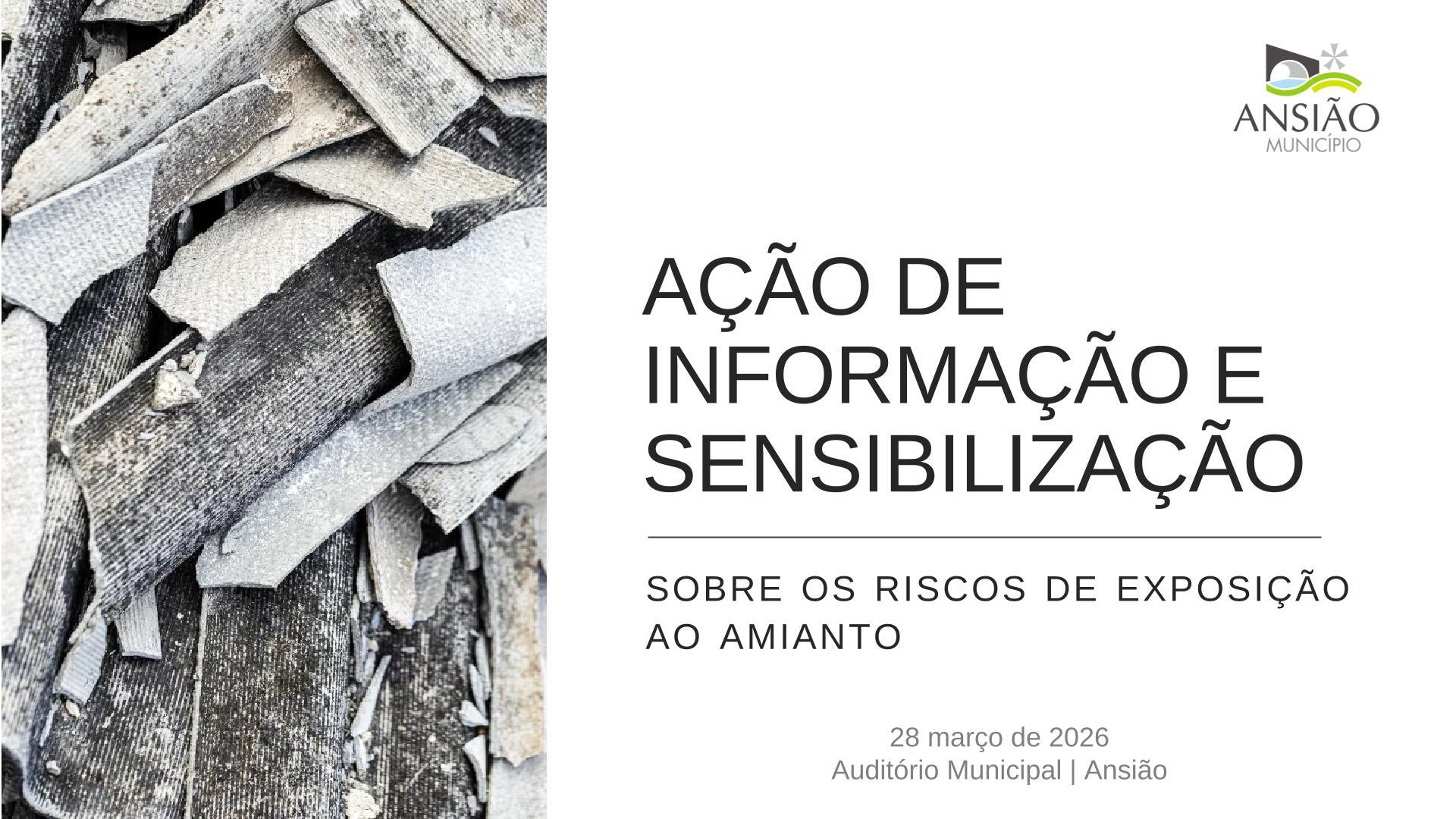 No âmbito da recente Semana da Consciência Ambiental, que decorreu entre os passados dias 19 e 28 de março, o Auditório Municipal de Ansião acolheu uma ação de informação e sensibilização sobre os riscos de exposição ao amianto, especialmente no contexto da tempestade Kristin. Esta ação contou com as presenças do Vereador do Ambiente, João Paulo Rosa, e da Vereadora da Educação, Maria Goreti Correia, e teve como principal objetivo promover comportamentos seguros e responsáveis, essenciais para a proteção da saúde pública e do ambiente.