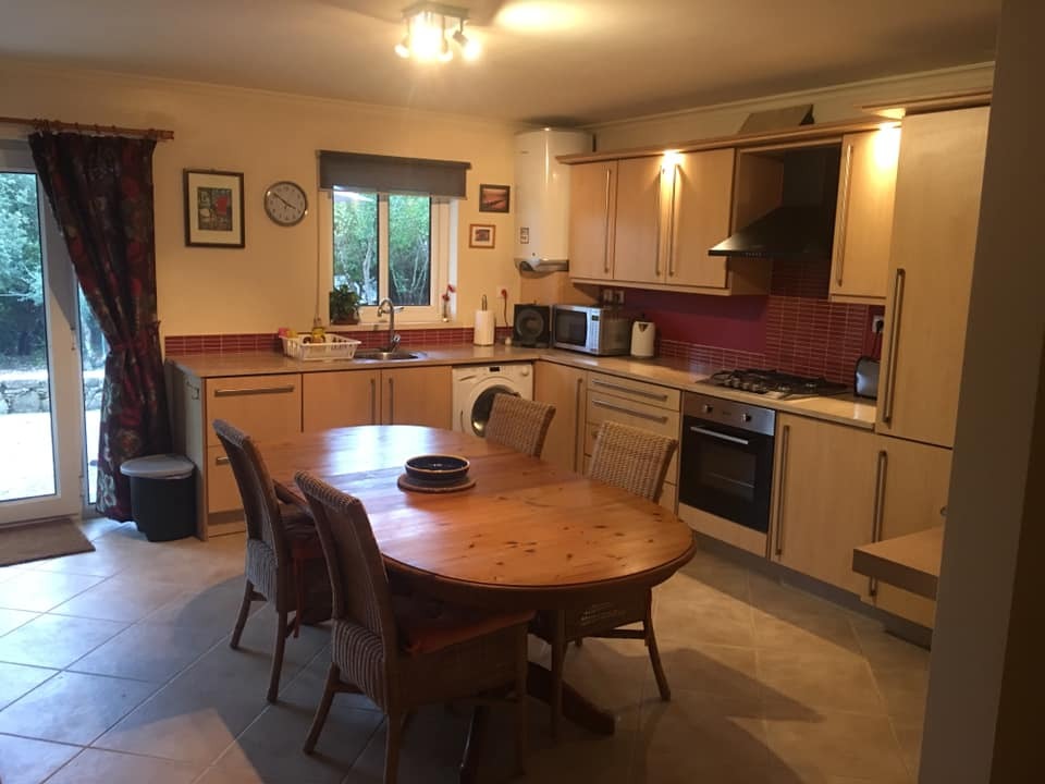 A habitação possui leitor de DVD, cozinha com máquina de lavar louça, micro-ondas e frigorífico, sala com área de estar e uma área de refeições, 4 quartos e 4 casas de banho, com bidé e chuveiro. Tem televisão com canais por satélite. A casa dispõe de um parque infantil. Os hóspedes podem nadar na piscina exterior, fazer caminhadas ou andar de bicicleta, relaxar no jardim e utilizar as comodidades para churrascos.