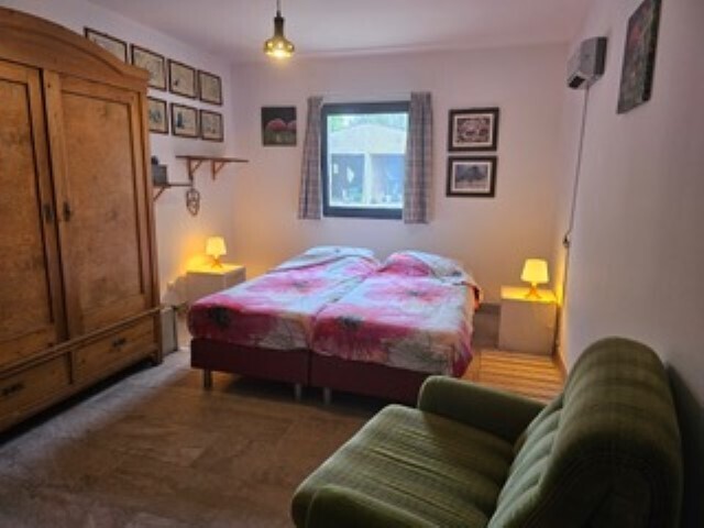 Um alojamento, pensado para casais e solteiros, com uma elegante sala de estar, um quarto duplo lindamente decorado com casa de banho privativa, serviço de pequeno-almoço (vegetariano) e um tranquilo jardim com piscina, para uma estadia relaxante.
