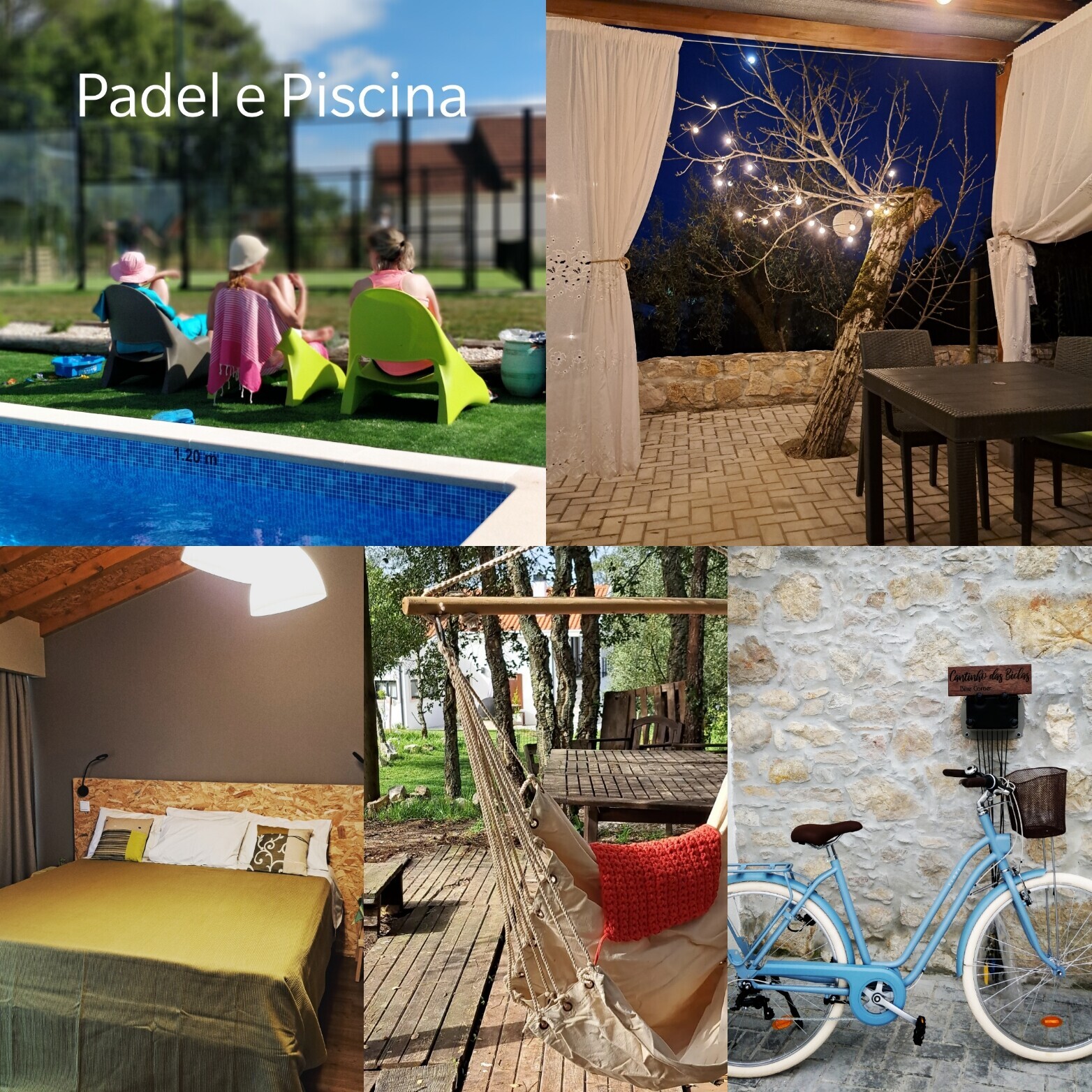 Proporcionamos vários momentos e atividades diversas, tais como: possibilidade de jogar Padel no nosso campo; relaxar à beira da piscina; passeios a pé ou de bicicleta nos vários trilhos e percursos da região e… muito mais.