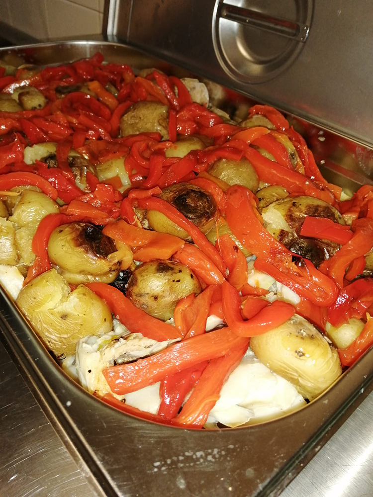 Cozinha tradicional Portuguesa com destaque na cabidela de galo e tibornada de bacalhau.