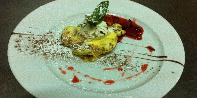 - Peito de frango recheado com alheira e molho de bálsamo acompanhado de arroz selvagem salteado de caju e espinafres