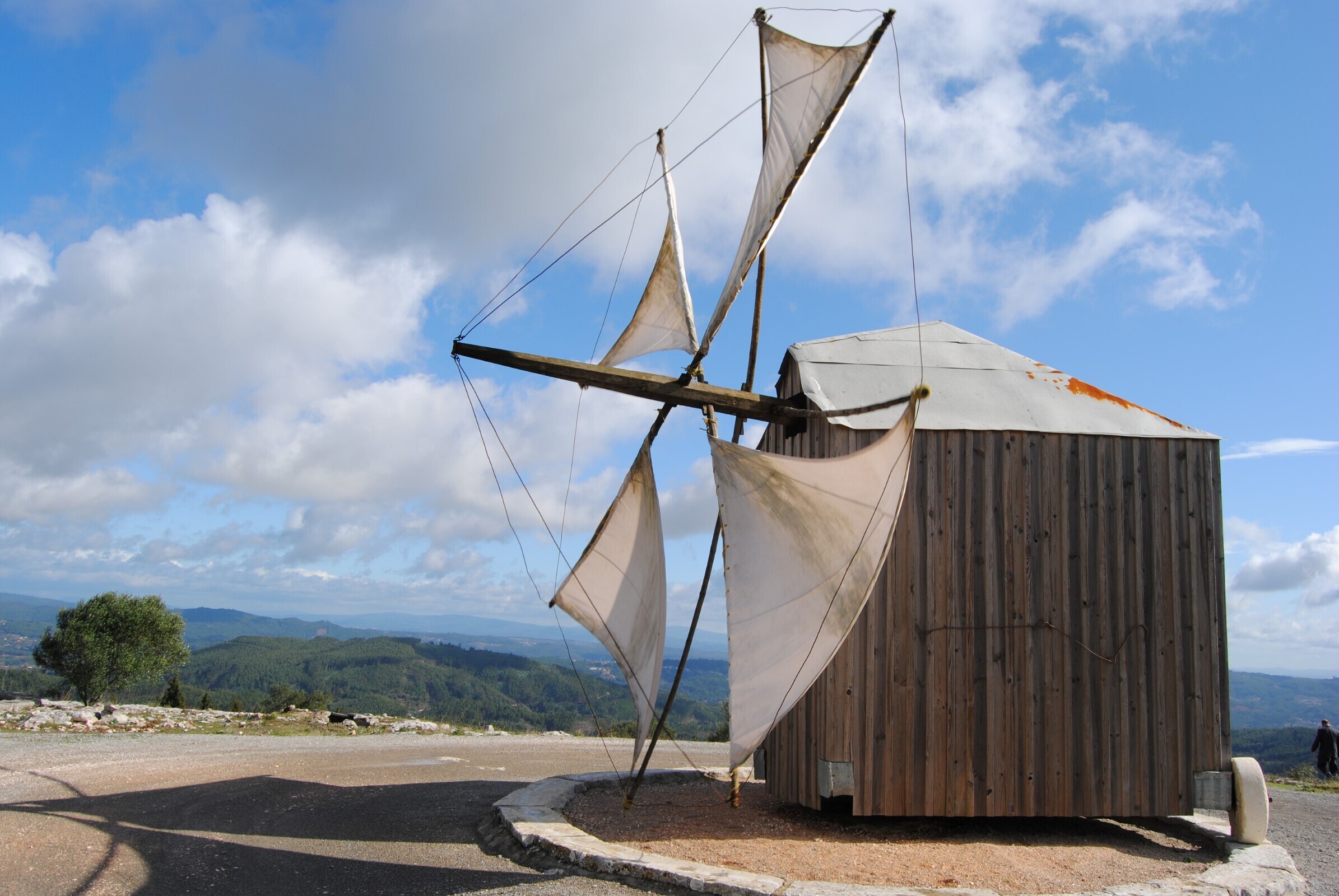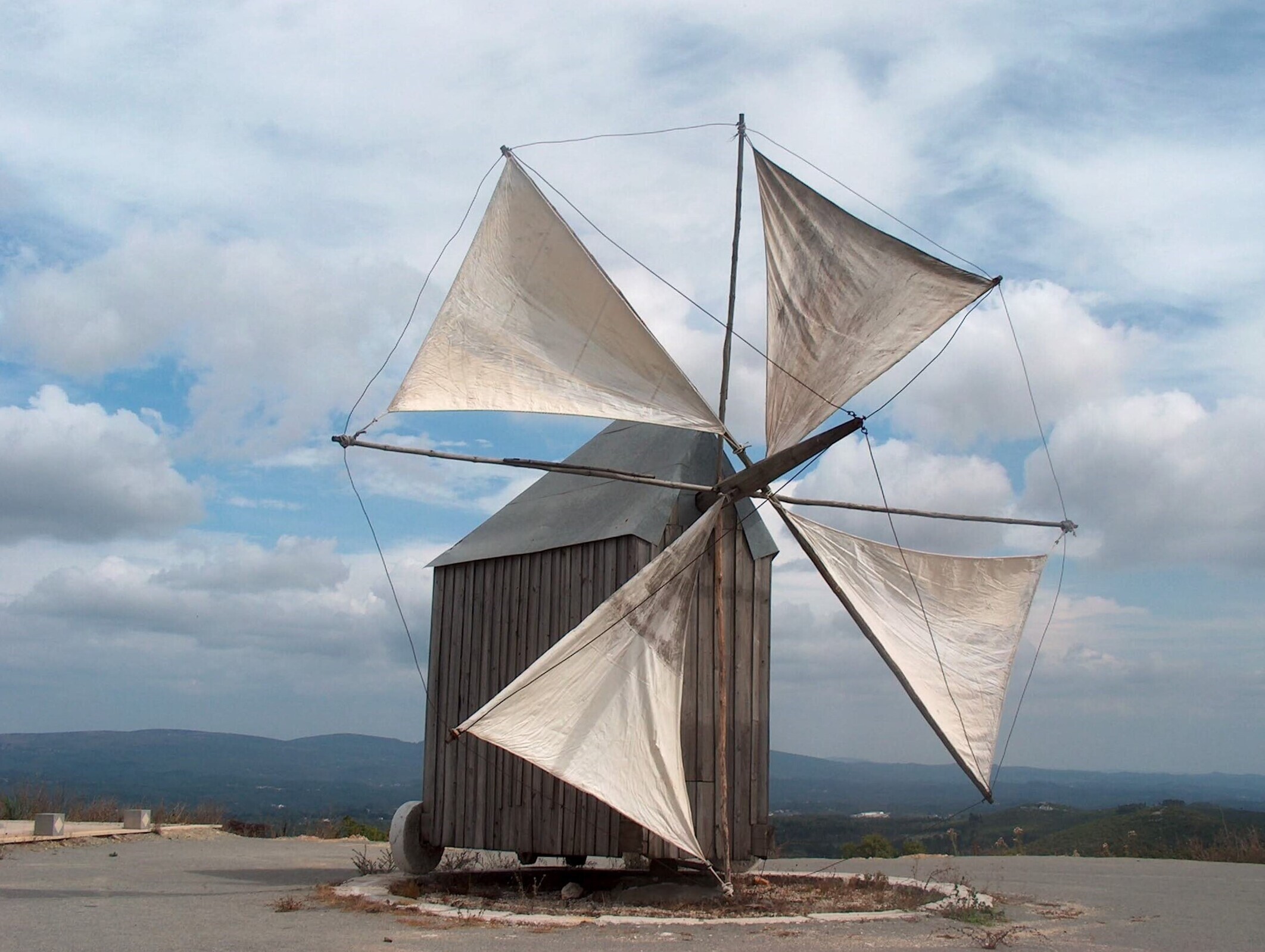 Este modelo de moinho, tradicional nesta região e originário do Oriente (Afeganistão), permite ao moleiro rodá-lo em direção ao vento, aproveitando a força do mesmo enquanto se encarrega de outras tarefas.