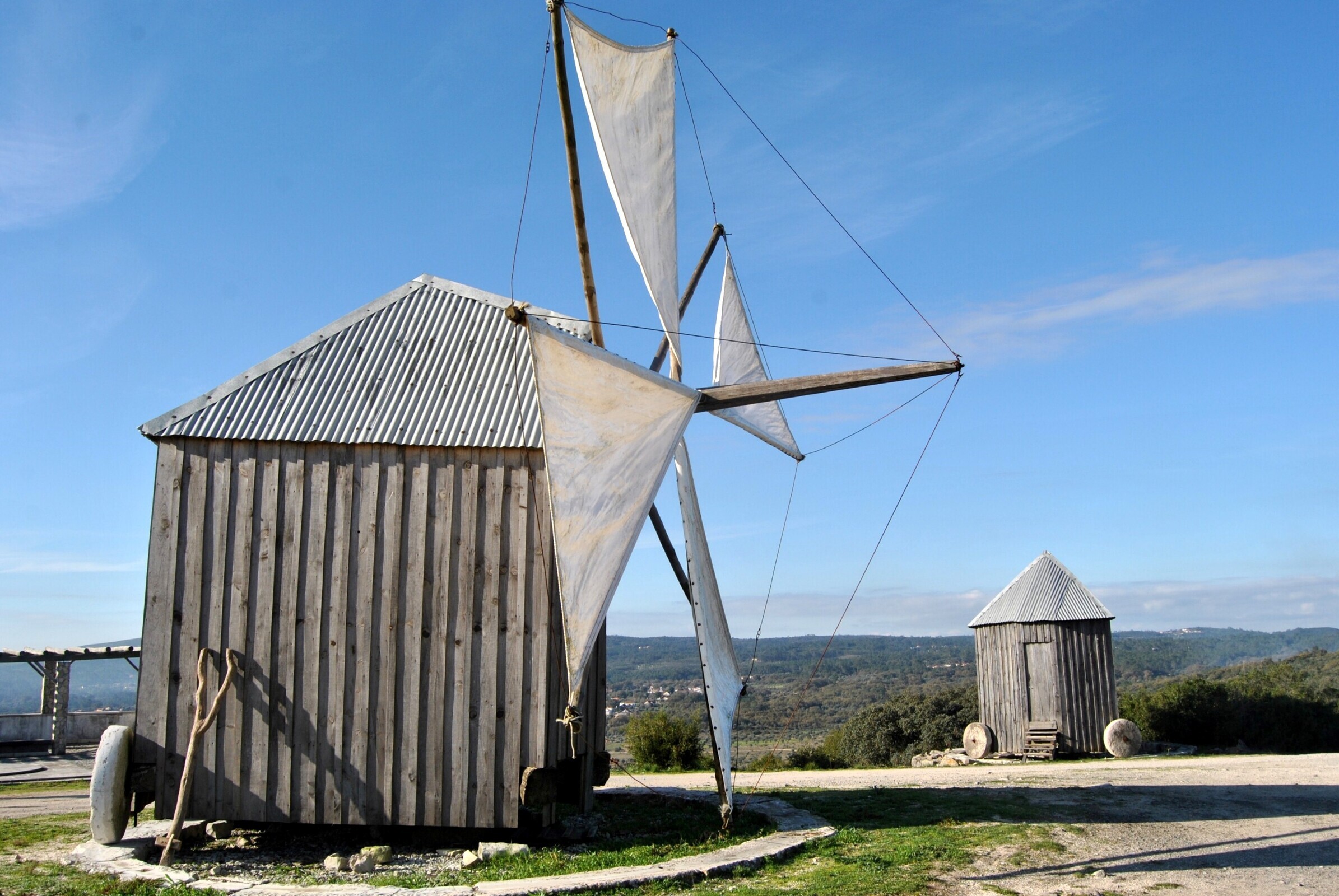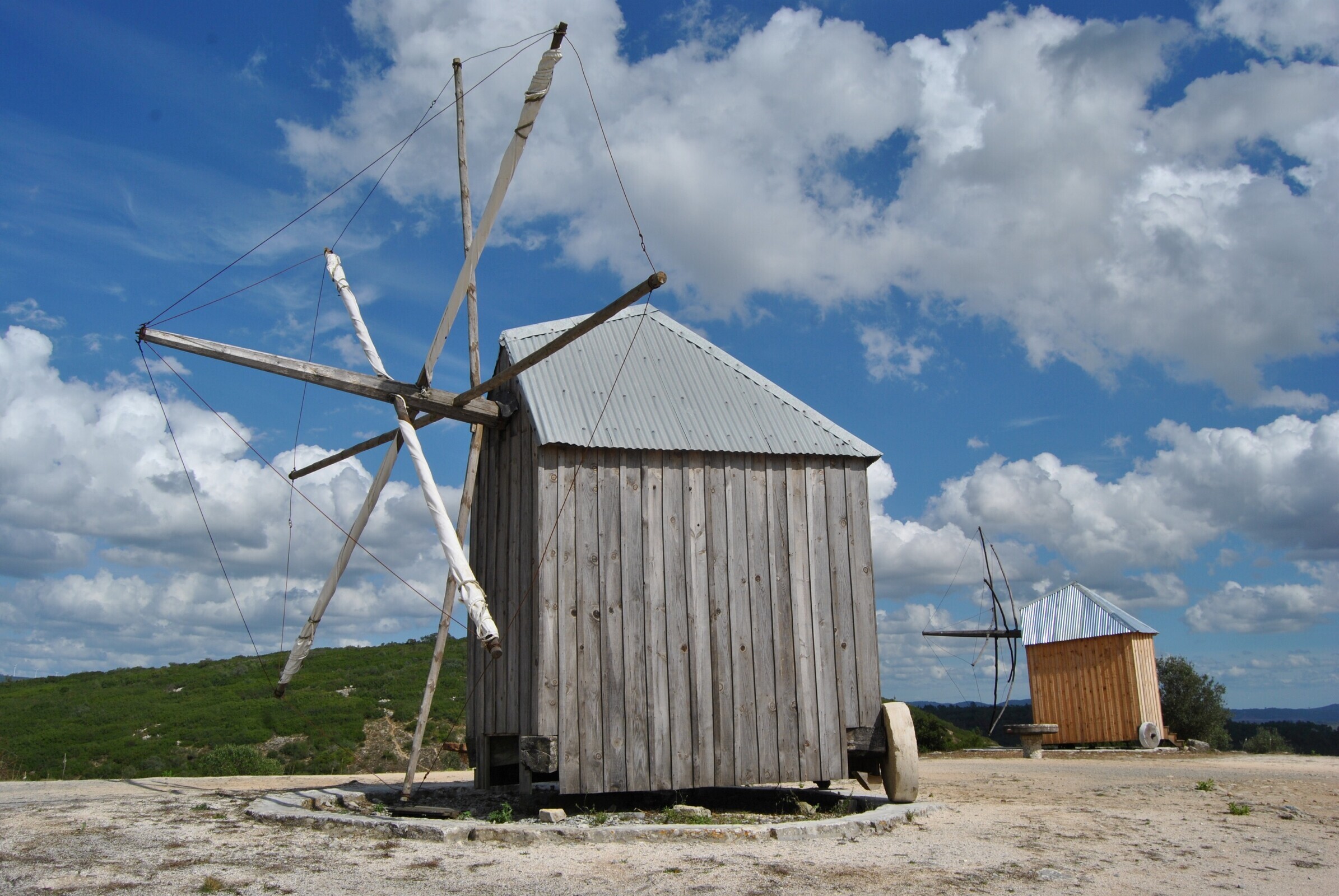 Este modelo de moinho, tradicional nesta região e originário do Oriente (Afeganistão), permite ao moleiro rodá-lo em direção ao vento, aproveitando a força do mesmo enquanto se encarrega de outras tarefas.