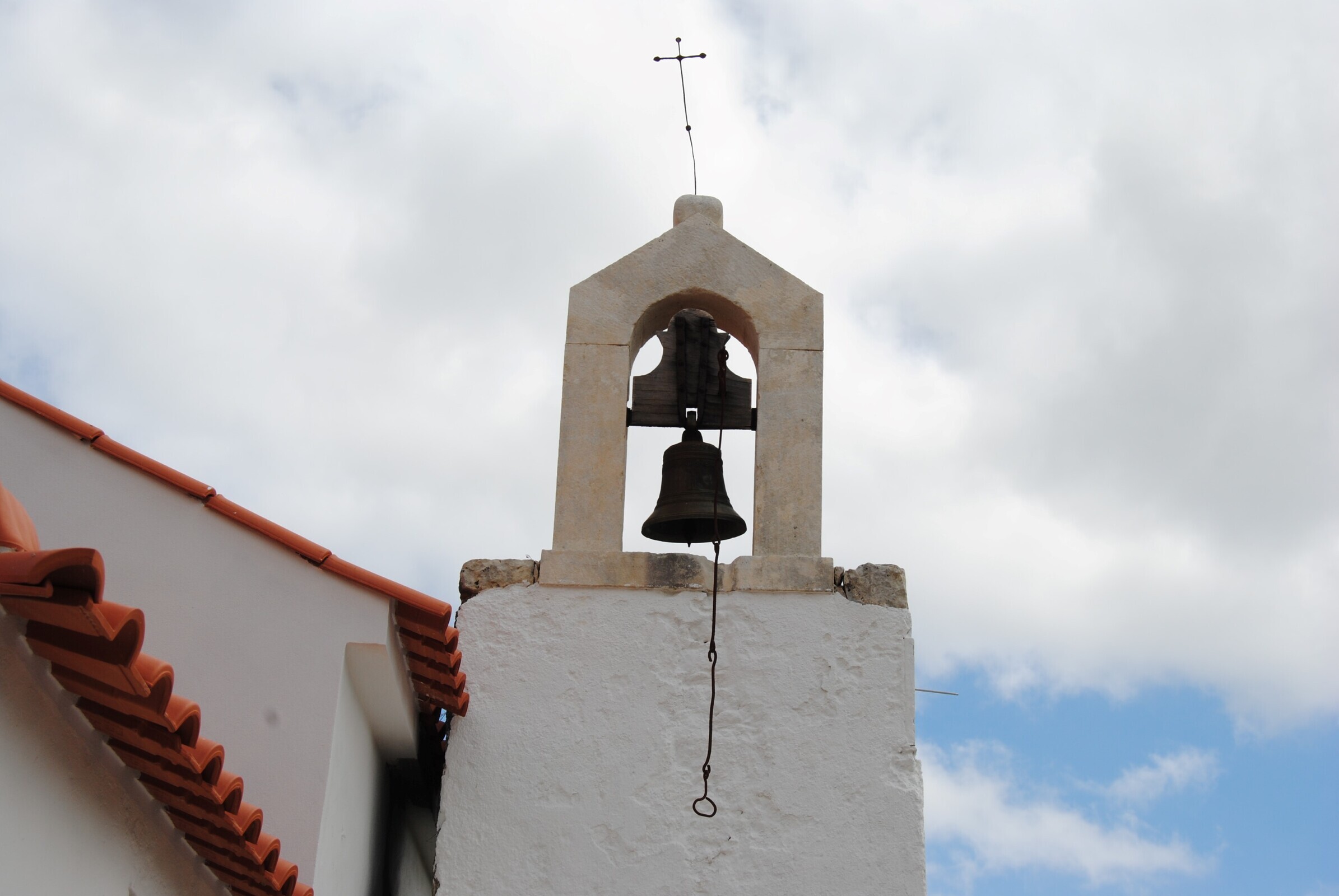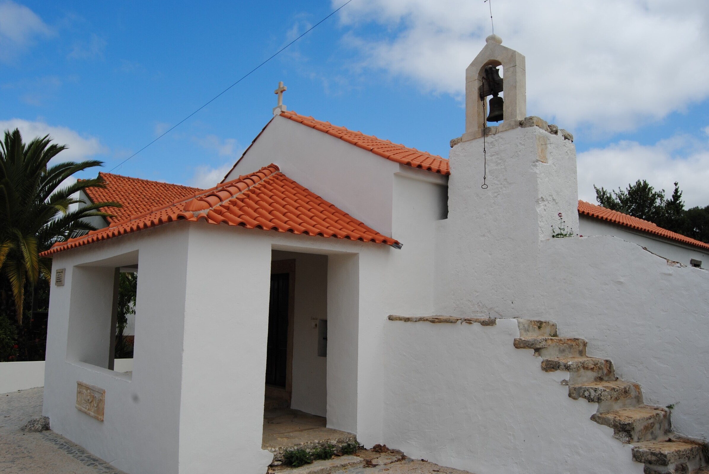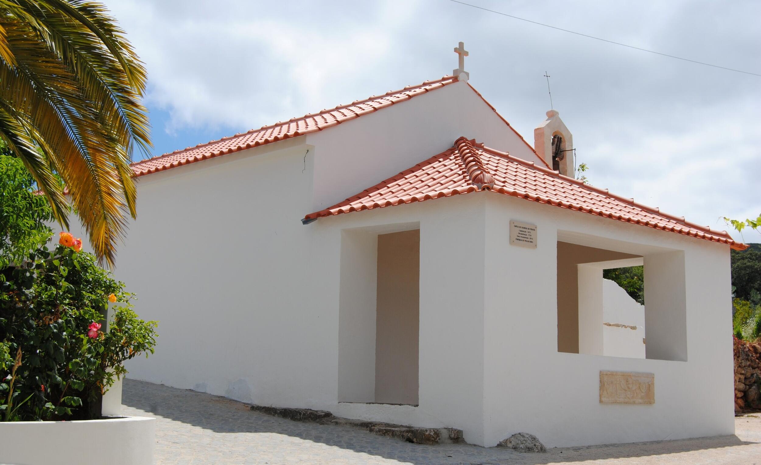 O frontispício da Capela é quase totalmente fechado por um alpendre e é encimado pela cruz latina.