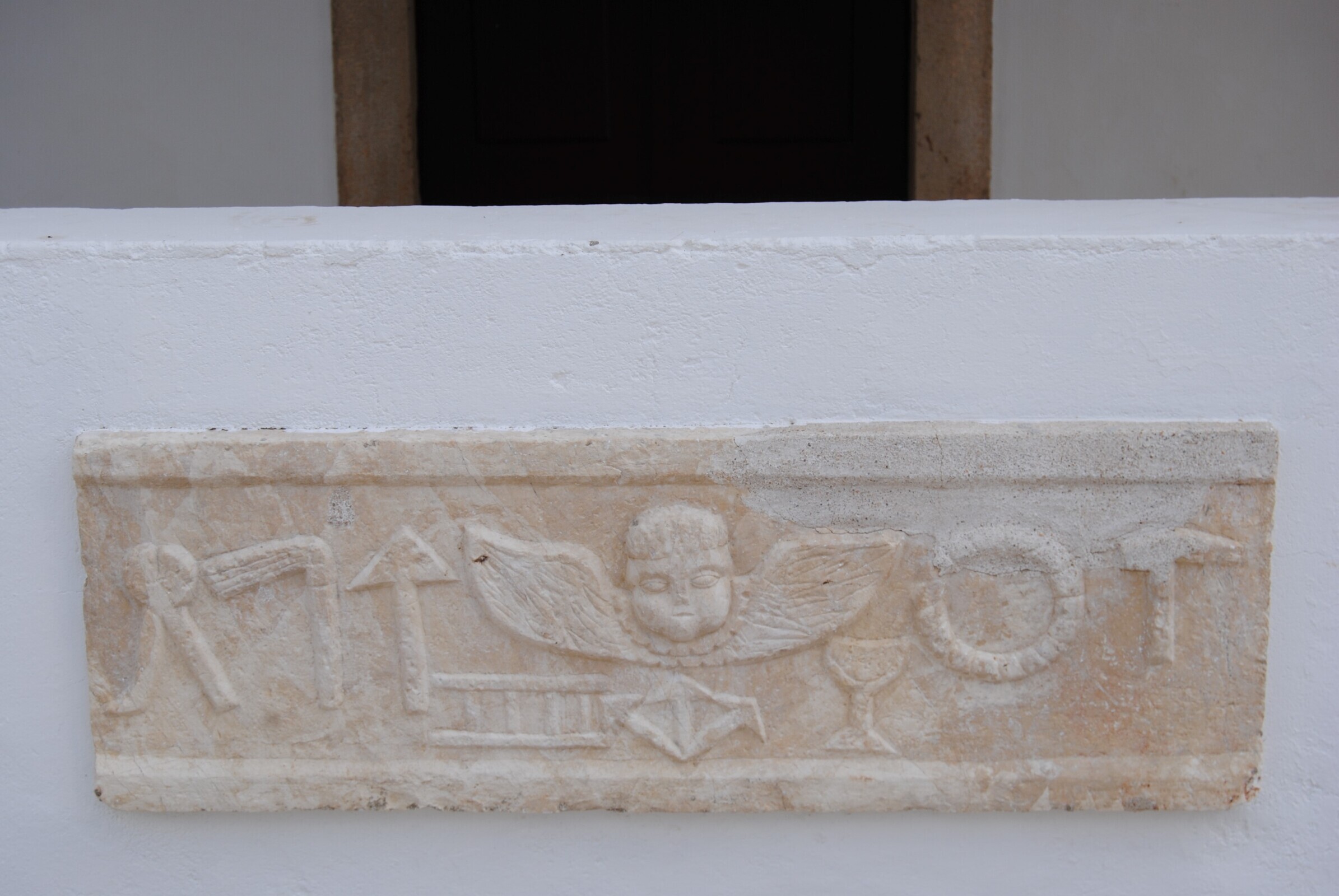 O painel em pedra que se encontra no alpendre mostra as armas da Paixão de Cristo com o rosto de um anjo ao centro. No interior destaca-se a escultura, em pedra, de Nossa Senhora do Pranto.