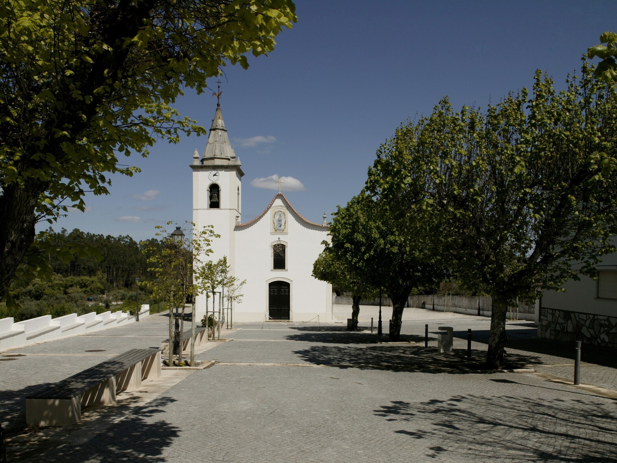 A Igreja Matriz de Pousaflores é de uma só nave e foi já mencionada nas Memórias Paroquiais de 1758. Possui uma cobertura em madeira de três planos, a fachada é simples, rasgada por uma porta de verga curva e, no piso de cima, uma janela envidraçada com a mesma forma da porta de entrada. Um painel de azulejos, policromado, encerra a fachada que é rematada por uma cruz latina.